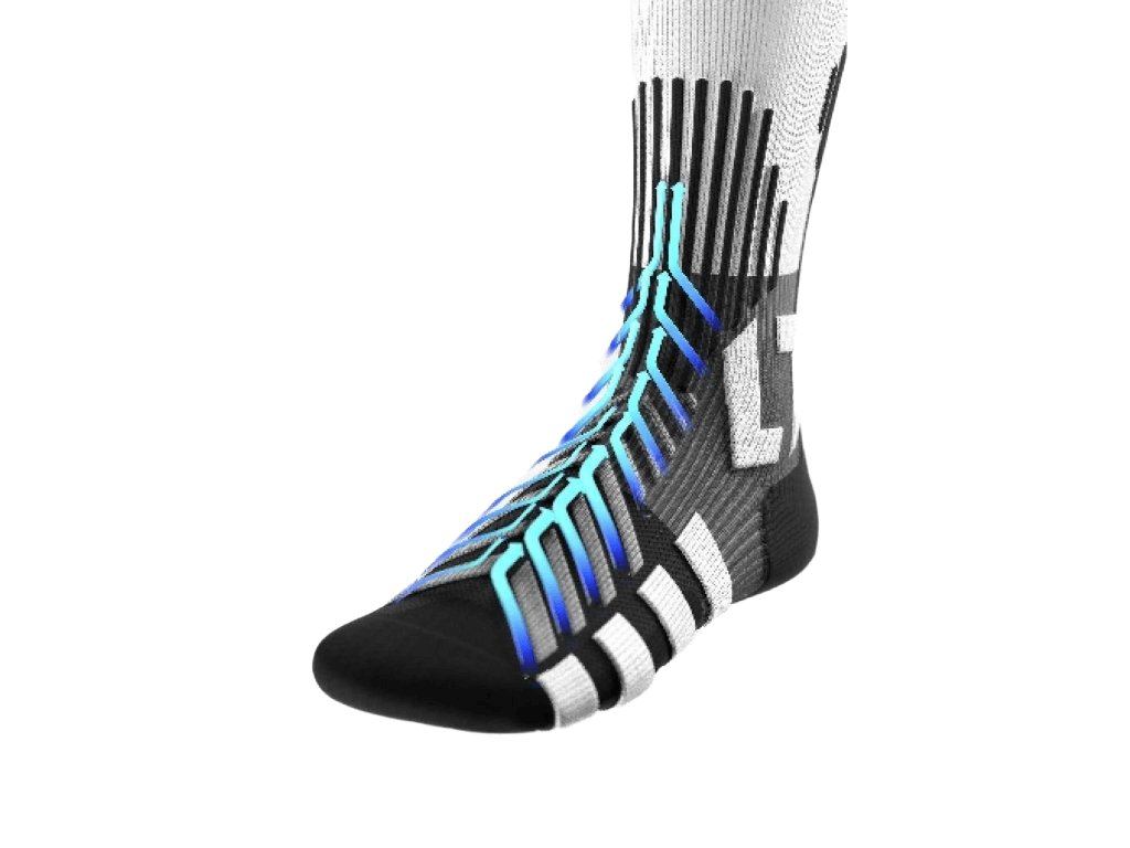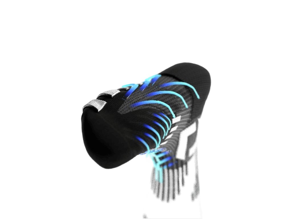 - Rugalmas kompressziós fonal a boka és a lábfej középső részén megakadályozza a zokni lecsúszását