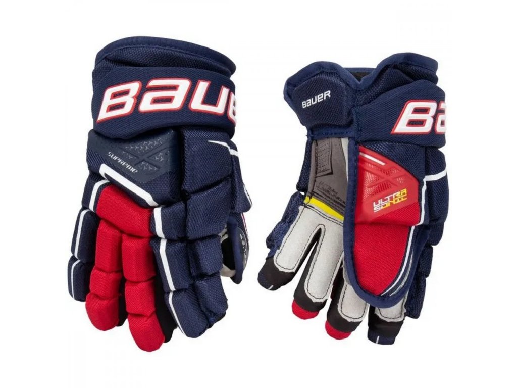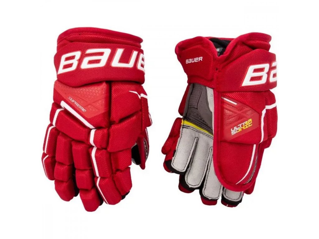Bauer Supreme Ultrasonic jégkorong kesztyű = kiváló védelem, maximális kényelem és tökéletes mozgás a fiatal jégkorongozók számára. Az olyan innovatív technológiák, mint a PORON XRD hab és az AMP mandzsetta, garantálják a biztonságot és a rugalmasságot a jégen.