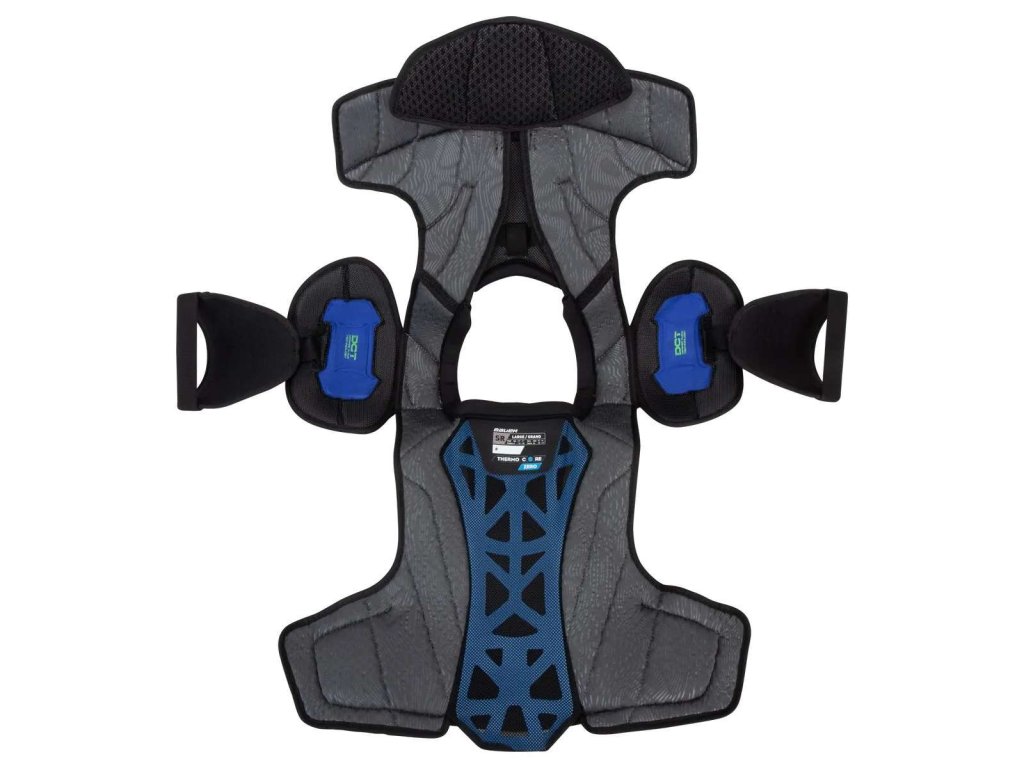 - Mellkas rész: A lebegő mellkas részt úgy tervezték, hogy a játékossal együtt mozogjon, a könnyű CURV kompozit anyag pedig elit szintű védelmet nyújt.