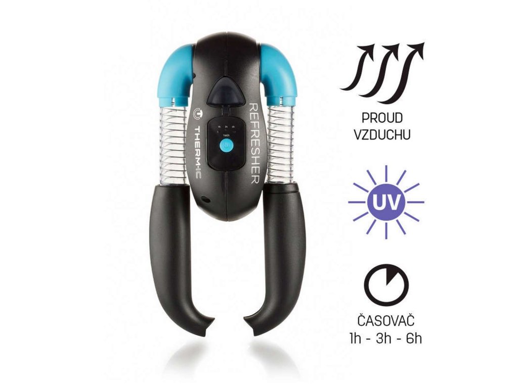 Therm-ic Refresher korcsolyaszárító - könnyen és kíméletesen szárítsa meg a nedves vagy átizzadt korcsolyákat vagy kesztyűket néhány óra alatt. Nemcsak a nedves felszerelést száríthatja meg, hanem jelentősen csökkentheti a szagproblémát is (a baktériumokat elpusztító UV-fénynek köszönhetően is). A Refresher modell időzítővel is rendelkezik, amely a kiválasztott időintervallum (1, 3 vagy 6 óra) után kikapcsol. A szárítót rendszeresen használja fizikai aktivitás után, hogy megakadályozza a penész kialakulását és terjedését.