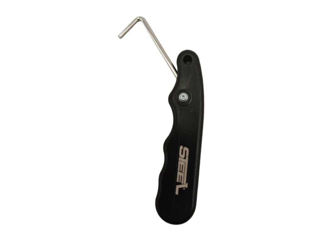 A Steel fűzőszorító egy egyszerű, de funkcionális eszköz a korcsolyák fűzőinek gyors és kényelmes meghúzásához.